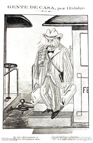 Gente de casa. Sátira sobre el importante líder político Guillermo Billinghurst, quien llegaría a ser presidente entre 1912 y 1914. Caricatura de 1909.