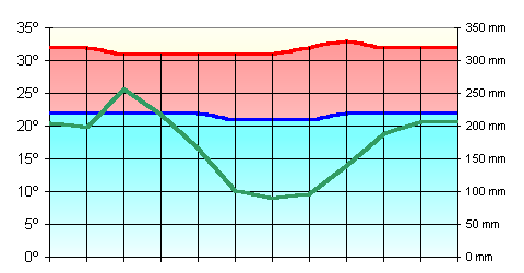 | 32º | 32º | 31º | 31º | 31º | 31º | 31º | 32º | 33º | 32º | 32º | 32º |